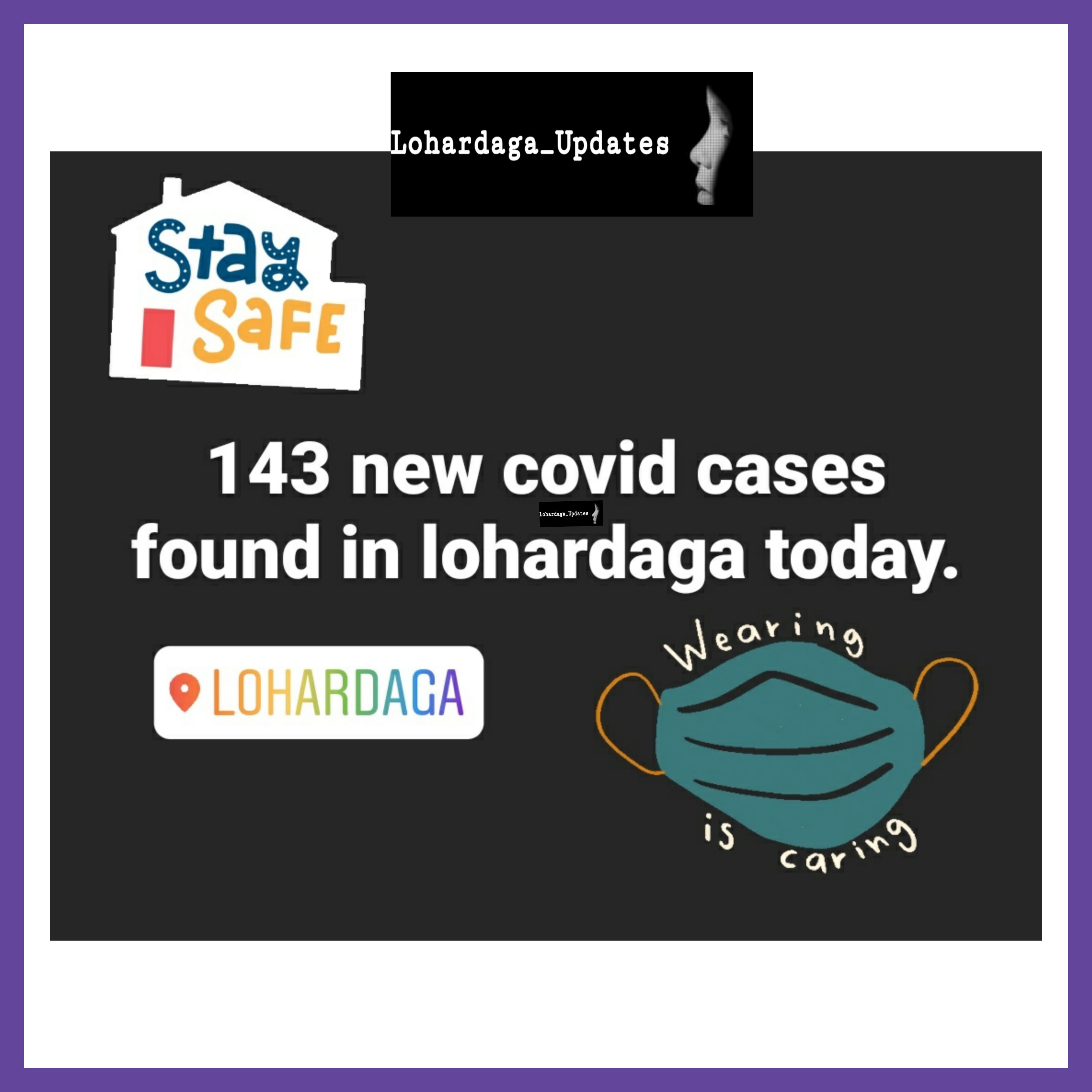 सिविल सर्जन डॉ विजय कुमार द्वारा जानकारी दी गई कि आज दिनांक 01.05.2021 को लोहरदगा जिला में कुल 143 कोरोना पॉजिटिव मामलों की पुष्टि हुई है।