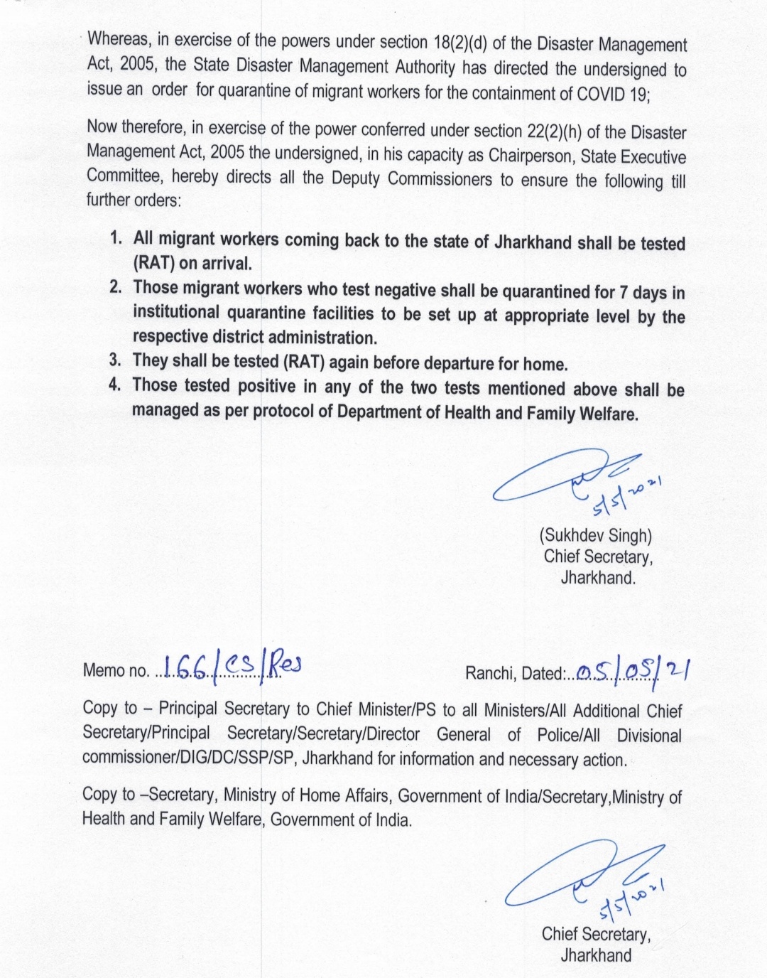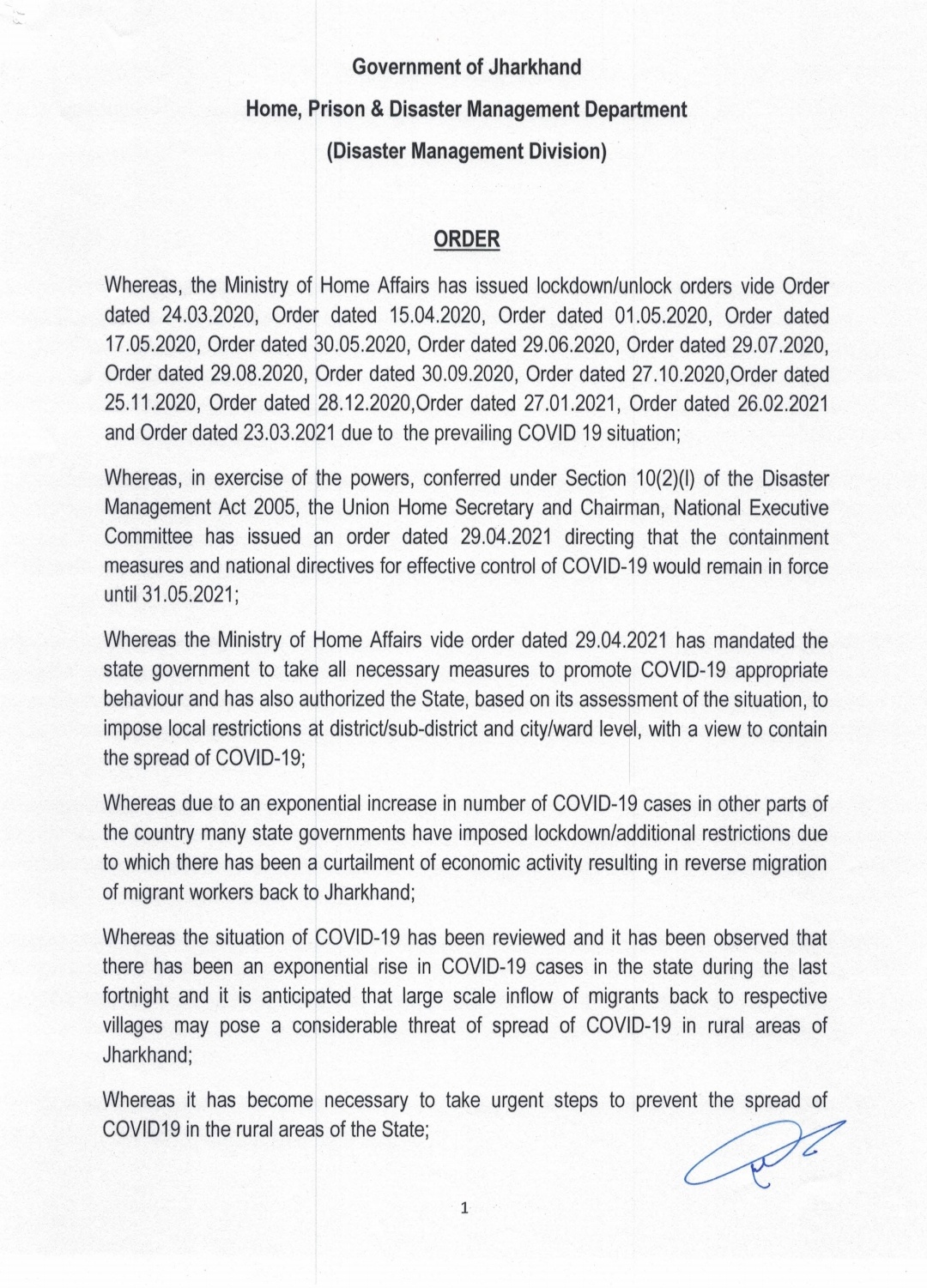 सिविल सर्जन डॉ विजय कुमार द्वारा जानकारी दी गई कि आज दिनांक 06.05.2021 को लोहरदगा जिला में कुल 326 कोरोना पॉजिटिव मामलों की पुष्टि हुई है। साथ ही 90 लोग होम आइसोलेशन के दस दिवसीय डिस्चार्ज पॉलिसी के तहत आइसोलेशन से ठीक भी हुए।